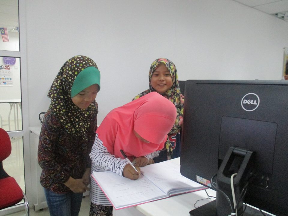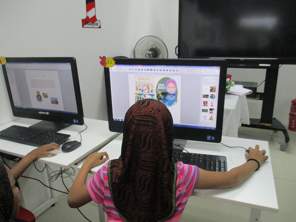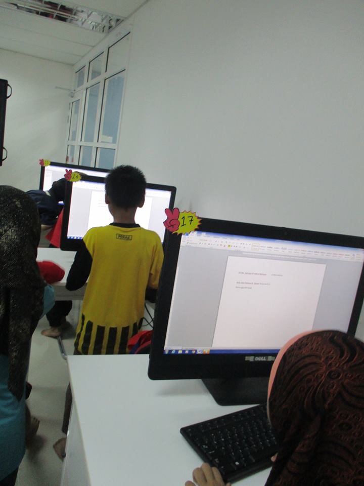Kelas microsoft Office Word bersama pelajar sekolah rendah.