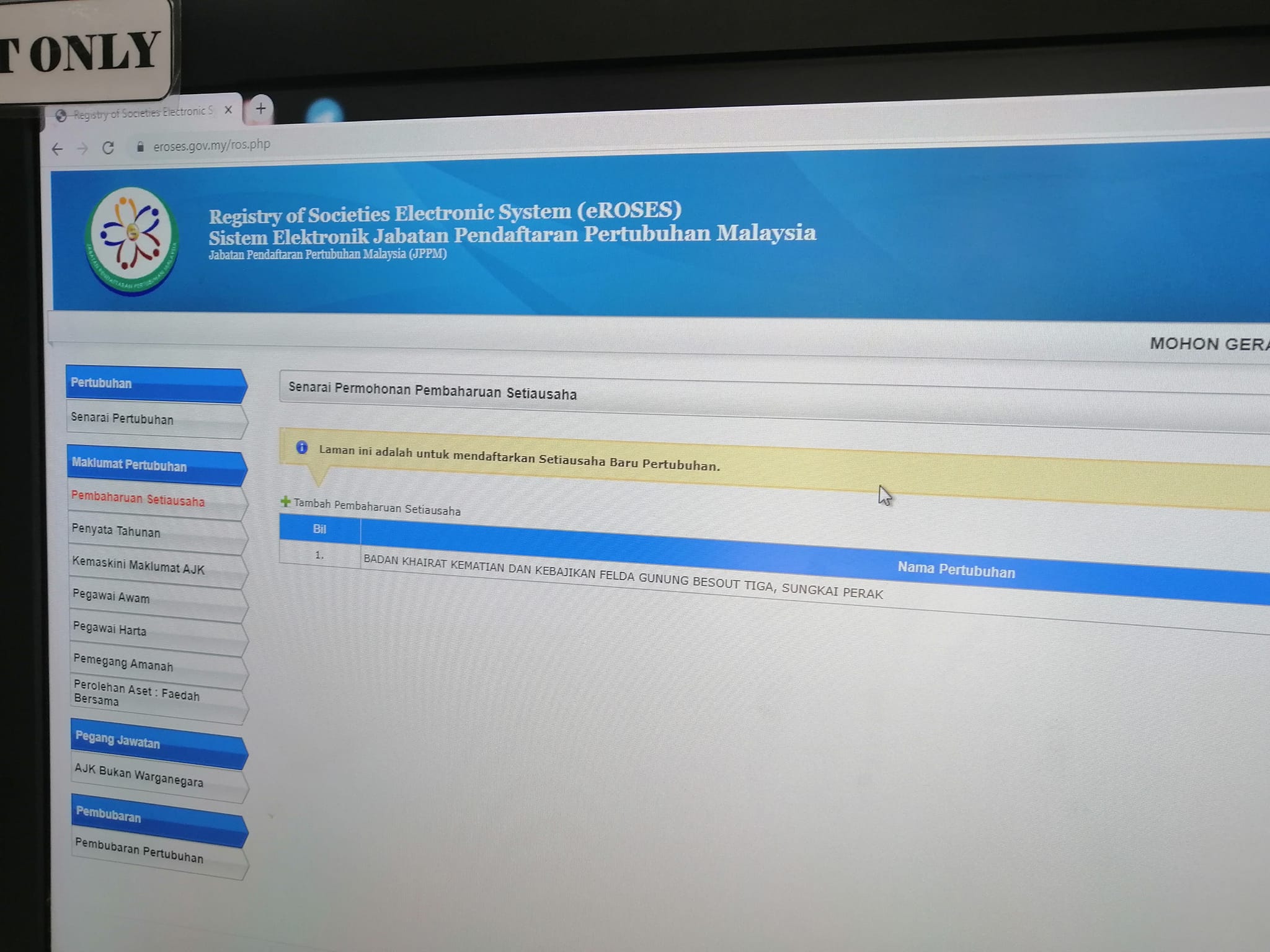 Pendaftaran R.O.S